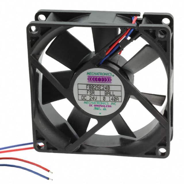 This is manufactured by Mechatronics Fan Group. The manufacturer part number is F8025E24B-FSR. The blades are constructed from robust polybutylene terephthalate (pbt) materials. It is assigned with possible HTSUS value of 8414.59.6590. The product is rohs compliant. Furthermore, the product is 25.00mm wide. It has a 46.0 cfm (1.29m³/min) air flow rate. It is approved by ce, cul, tuv, ul. It has noise values of 32.0db(a). It also exhibits voltage rating of 24vdc. This has integrated with a ball, a bearing with long-lasting features. It provides maximum rpm up to 2800 rpm. The product has a 0.160 in h2o (39.8 pa) static pressure. It is shipped in bulk. The product's diameters include square - 80mm l x 80mm h. The product features 2 wire leads termination style. It has a long 22 weeks standard lead time. Additionally, the product's output is 0.140a Its typical moisture sensitivity level is 1 (unlimited). The splendid features of the product include auto restart, locked rotor protection. The typical product's weight is 0.174 lb (78.93 g). The product f8025, is a highly preferred choice for users. The frame of the product is made from highly durable polybutylene terephthalate (pbt) materials. The latest designed fan is a type of tubeaxial offering unmatchable applications. Moreover, it corresponds to f8025, a base product number of the product. The product is designated with the ear99 code number