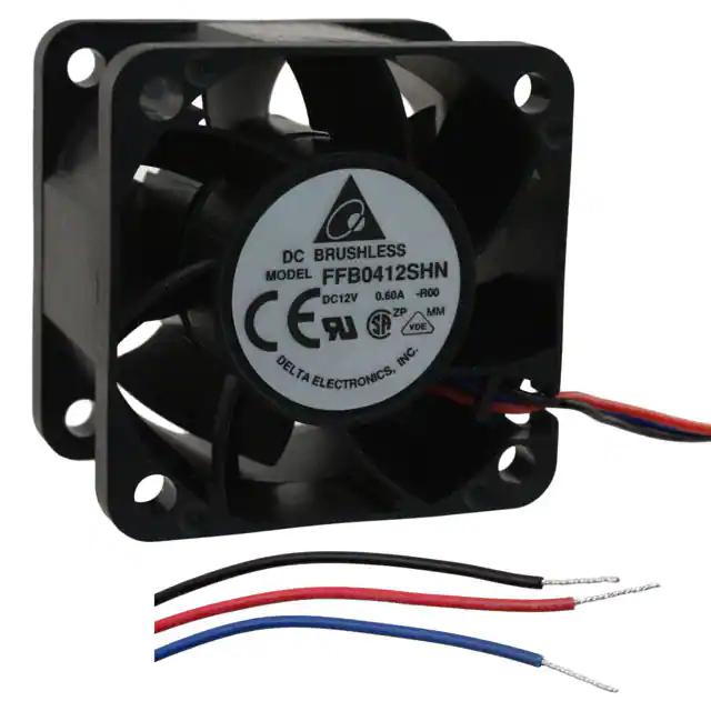 This is manufactured by Delta Electronics. The manufacturer part number is FFB0412SHN-R00. The blades are constructed from robust plastic materials. It is assigned with possible HTSUS value of 8414.59.6590. The product is rohs3 compliant. Furthermore, the product is 28.00mm wide. The product features power and watts of 6 w. It has a 24.0 cfm (0.672m³/min) air flow rate. It is approved by ce, csa, ul, vde. While the voltage range is 4 ~ 13.8vdc. It has noise values of 54.5db(a). It also exhibits voltage rating of 12vdc. In addition, it is reach unaffected. This has integrated with a ball, a bearing with long-lasting features. The product has 14 ~ 140°f (-10 ~ 60°c) operating temperature range. It provides maximum rpm up to 13000 rpm. This product offers longer life span for 50000 hrs @ 40°c. The product has a 1.075 in h2o (267.8 pa) static pressure. It is shipped in bulk. The product's diameters include square - 40mm l x 40mm h. The product features 3 wire leads termination style. Additionally, the product's output is 0.500a Its typical moisture sensitivity level is 1 (unlimited). The splendid features of the product include locked rotor sensor. The typical product's weight is 0.071 lb (32.21 g). The product ffb, is a highly preferred choice for users. The frame of the product is made from highly durable plastic materials. The latest designed fan is a type of tubeaxial offering unmatchable applications. Moreover, it corresponds to ffb0412, a base product number of the product. The product is designated with the ear99 code number