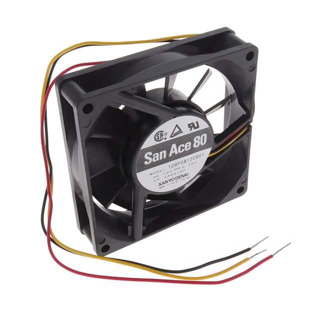 This is manufactured by Sanyo Denki America Inc.. The manufacturer part number is 109P0812C601. The blades are constructed from robust plastic materials. It is assigned with possible HTSUS value of 8414.59.6590. The product is rohs3 compliant. Furthermore, the product is 20.00mm wide. The product features power and watts of 3.48 w. It has a 37.8 cfm (1.06m³/min) air flow rate. It is approved by csa, tuv, ul. While the voltage range is 10.2 ~ 13.8vdc. It has noise values of 39.0db(a). It also exhibits voltage rating of 12vdc. This has integrated with a ball, a bearing with long-lasting features. The product has -4 ~ 140°f (-20 ~ 60°c) operating temperature range. It provides maximum rpm up to 3700 rpm. This product offers longer life span for 60000 hrs @ 60°c. The product has a 0.185 in h2o (46.1 pa) static pressure. It is shipped in box. The product's diameters include square - 80mm l x 80mm h. The product features 3 wire leads termination style. It has a long 55 weeks standard lead time. Additionally, the product's output is 0.290a Its typical moisture sensitivity level is 1 (unlimited). The splendid features of the product include locked rotor protection, speed sensor (tach). The typical product's weight is 0.222 lb (100.7 g). The product san ace 80, is a highly preferred choice for users. The frame of the product is made from highly durable plastic materials. The latest designed fan is a type of tubeaxial offering unmatchable applications. Moreover, it corresponds to 109p0812, a base product number of the product. The product is designated with the ear99 code number