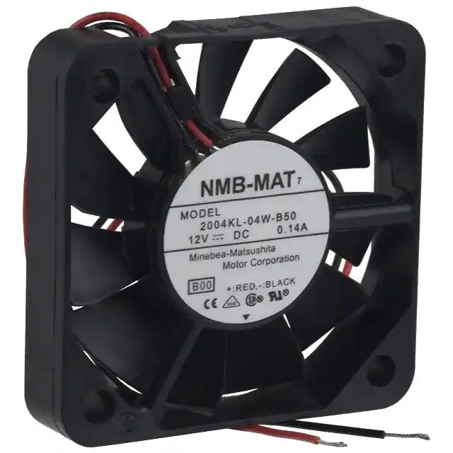 This is manufactured by NMB Technologies Corporation. The manufacturer part number is 2004KL-04W-B50-B00. The blades are constructed from robust plastic materials. It is assigned with possible HTSUS value of 8414.59.6590. The product is rohs compliant. Furthermore, the product is 10.00mm wide. The product features power and watts of 1.2 w. It has a 10.2 cfm (0.286m³/min) air flow rate. It is approved by ce, csa, ul, vde. While the voltage range is 10.2 ~ 13.8vdc. It has noise values of 34.0db. It also exhibits voltage rating of 12vdc. This has integrated with a ball, a bearing with long-lasting features. The product has 14 ~ 158°f (-10 ~ 70°c) operating temperature range. It provides maximum rpm up to 5500 rpm. This product offers longer life span for 60000 hrs @ 25°c. The product has a 0.140 in h2o (34.9 pa) static pressure. It is shipped in bulk. The product's diameters include square - 50mm l x 50mm h. The product features 2 wire leads termination style. Additionally, the product's output is 0.100a Its typical moisture sensitivity level is 1 (unlimited). The typical product's weight is 0.044 lb (19.96 g). The product 2004kl, is a highly preferred choice for users. The frame of the product is made from highly durable plastic materials. The latest designed fan is a type of tubeaxial offering unmatchable applications. The product is designated with the ear99 code number
