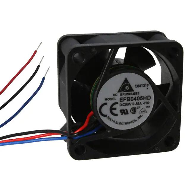 This is manufactured by Delta Electronics. The manufacturer part number is EFB0405HD-F00. The blades are constructed from robust plastic materials. It is assigned with possible HTSUS value of 8414.59.6590. The product is rohs3 compliant. Furthermore, the product is 20.00mm wide. The product features power and watts of 1.25 w. It has a 8.5 cfm (0.238m³/min) air flow rate. It is approved by ce, csa, ul, vde. While the voltage range is 4.5 ~ 5.5vdc. It has noise values of 28.5db(a). It also exhibits voltage rating of 5vdc. In addition, it is reach unaffected. This has integrated with a ball, a bearing with long-lasting features. The product has 14 ~ 158°f (-10 ~ 70°c) operating temperature range. It provides maximum rpm up to 7600 rpm. This product offers longer life span for 70000 hrs @ 40°c. The product has a 0.303 in h2o (75.5 pa) static pressure. It is shipped in bulk. The product's diameters include square - 40mm l x 40mm h. The product features 3 wire leads termination style. Additionally, the product's output is 0.250a Its typical moisture sensitivity level is 1 (unlimited). The splendid features of the product include locked rotor protection, speed sensor (tach). The typical product's weight is 0.073 lb (33.11 g). The product efb, is a highly preferred choice for users. The frame of the product is made from highly durable plastic materials. The latest designed fan is a type of tubeaxial offering unmatchable applications. Moreover, it corresponds to efb0405, a base product number of the product. The product is designated with the ear99 code number