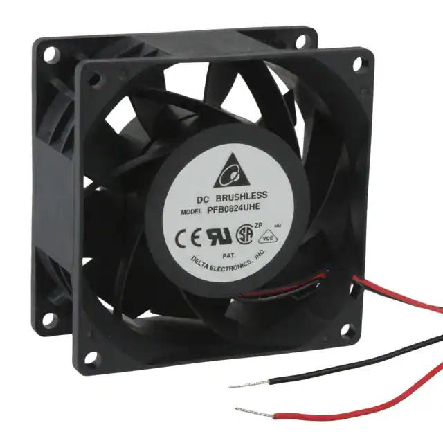This is manufactured by Delta Electronics. The manufacturer part number is PFB0824UHE-T500. The blades are constructed from robust plastic materials. It is assigned with possible HTSUS value of 8414.59.6590. The product is rohs3 compliant. Furthermore, the product is 38.00mm wide. The product features power and watts of 18.48 w. It has a 107.3 cfm (3.00m³/min) air flow rate. It is approved by ce, csa, ul, vde. While the voltage range is 14 ~ 26.4vdc. It has noise values of 61.0db(a). It also exhibits voltage rating of 24vdc. In addition, it is reach unaffected. This has integrated with a ball, a bearing with long-lasting features. The product has 14 ~ 140°f (-10 ~ 60°c) operating temperature range. It provides maximum rpm up to 7500 rpm. This product offers longer life span for 50000 hrs @ 40°c. The product has a 1.368 in h2o (340.8 pa) static pressure. It is shipped in bulk. The product's diameters include square - 80mm l x 80mm h. The product features 2 wire leads termination style. Additionally, the product's output is 0.770a Its typical moisture sensitivity level is 1 (unlimited). It is IP rated with ip55 - dust protected, water resistant. The splendid features of the product include locked rotor protection. The typical product's weight is 0.441 lb (200.03 g). The product pfb, is a highly preferred choice for users. The frame of the product is made from highly durable plastic materials. The latest designed fan is a type of tubeaxial offering unmatchable applications. Moreover, it corresponds to pfb0824, a base product number of the product. The product is designated with the ear99 code number