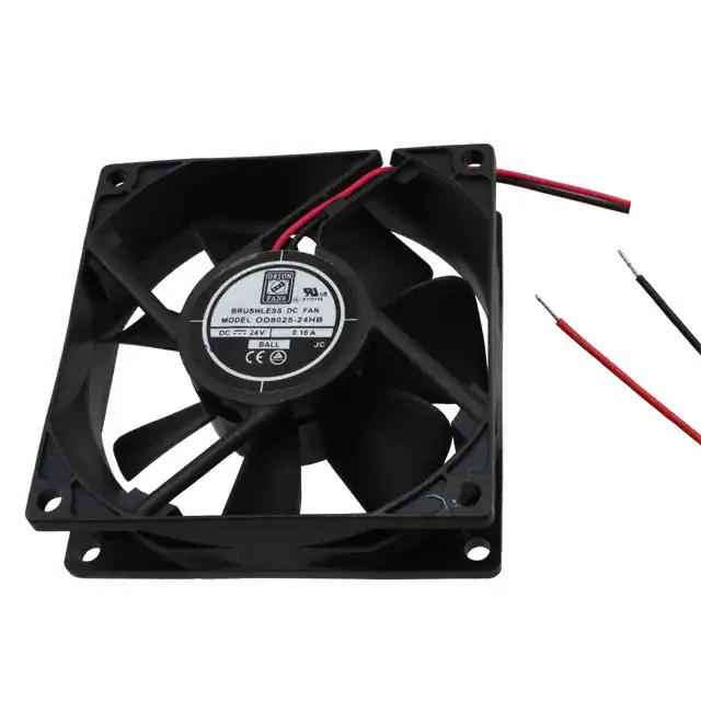 This is manufactured by Orion Fans. The manufacturer part number is OD8025-24HB. The blades are constructed from robust polybutylene terephthalate (pbt) materials. It is assigned with possible HTSUS value of 8414.59.6590. The product is rohs3 compliant. Furthermore, the product is 25.00mm wide. The product features power and watts of 1.44 w. It has a 40.0 cfm (1.12m³/min) air flow rate. It is approved by curus, tuv. It has noise values of 35.0db. It also exhibits voltage rating of 24vdc. In addition, it is reach unaffected. This has integrated with a ball, a bearing with long-lasting features. The product has -4 ~ 167°f (-20 ~ 75°c) operating temperature range. It provides maximum rpm up to 3100 rpm. This product offers longer life span for 65000 hrs @ 45°c. The product has a 0.160 in h2o (39.8 pa) static pressure. It is shipped in box. The product's diameters include square - 80mm l x 80mm h. The product features 2 wire leads termination style. It has a long 19 weeks standard lead time. Additionally, the product's output is 0.110a Its typical moisture sensitivity level is 1 (unlimited). The splendid features of the product include auto restart. The typical product's weight is 0.191 lb (86.64 g). The product od8025, is a highly preferred choice for users. The frame of the product is made from highly durable polybutylene terephthalate (pbt) materials. The latest designed fan is a type of tubeaxial offering unmatchable applications. Moreover, it corresponds to od8025, a base product number of the product. The product is designated with the ear99 code number