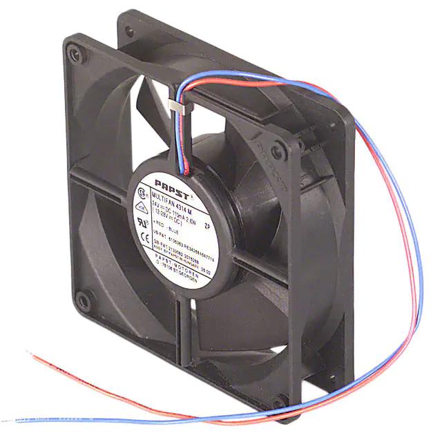 This is manufactured by ebm-papst Inc.. The manufacturer part number is 4314M. The blades are constructed from robust polyamide (pa), nylon, fiberglass reinforced materials. It is assigned with possible HTSUS value of 8414.59.6590. The product is rohs3 compliant. Furthermore, the product is 32.00mm wide. The product features power and watts of 2.6 w. It has a 82.4 cfm (2.31m³/min) air flow rate. It is approved by ce, csa, ul, vde. While the voltage range is 12 ~ 28vdc. It has noise values of 39.0db(a). It also exhibits voltage rating of 24vdc. In addition, it is reach unaffected. This has integrated with a ball, a bearing with long-lasting features. The product has -4 ~ 167°f (-20 ~ 75°c) operating temperature range. It provides maximum rpm up to 2300 rpm. This product offers longer life span for 70000 hrs @ 40°c. It is shipped in bulk. The product's diameters include square - 119mm l x 119mm h. The product features 2 wire leads termination style. It has a long 88 weeks standard lead time. Its typical moisture sensitivity level is 1 (unlimited). The typical product's weight is 0.485 lb (219.99 g). The product 4300, is a highly preferred choice for users. The frame of the product is made from highly durable polybutylene terephthalate (pbt), fiberglass reinforced materials. The latest designed fan is a type of tubeaxial offering unmatchable applications. The product is designated with the ear99 code number