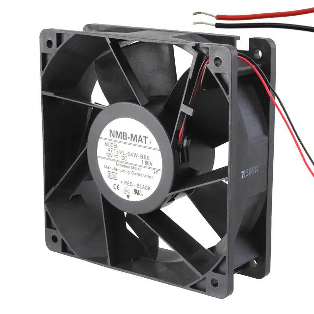 This is manufactured by NMB Technologies Corporation. The manufacturer part number is 4715VL-04W-B60-E00. The blades are constructed from robust plastic materials. It is assigned with possible HTSUS value of 8414.59.6590. The product is rohs compliant. Furthermore, the product is 38.00mm wide. The product features power and watts of 18 w. It has a 189.9 cfm (5.32m³/min) air flow rate. It is approved by ce, ul, vde. While the voltage range is 10 ~ 13.8vdc. It has noise values of 59.5db(a). It also exhibits voltage rating of 12vdc. This has integrated with a ball, a bearing with long-lasting features. The product has 14 ~ 140°f (-10 ~ 60°c) operating temperature range. It provides maximum rpm up to 5000 rpm. This product offers longer life span for 100000 hrs @ 25°c. The product has a 0.920 in h2o (229.2 pa) static pressure. It is shipped in box. The product's diameters include square - 120mm l x 120mm h. The product features 2 wire leads termination style. Additionally, the product's output is 1.5a Its typical moisture sensitivity level is 1 (unlimited). The typical product's weight is 0.816 lb (370.13 g). The product 4715vl, is a highly preferred choice for users. The frame of the product is made from highly durable plastic materials. The latest designed fan is a type of tubeaxial offering unmatchable applications. Moreover, it corresponds to 4715vl, a base product number of the product. The product is designated with the ear99 code number