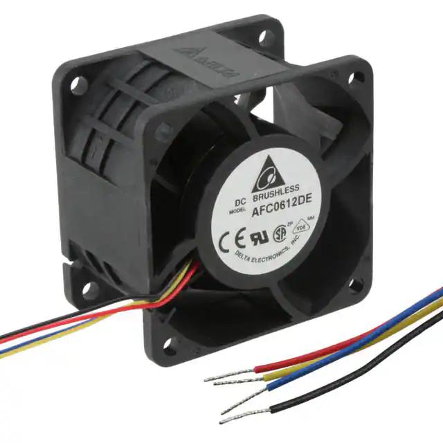 This is manufactured by Delta Electronics. The manufacturer part number is AFC0612DE-AF00. The blades are constructed from robust plastic materials. It is assigned with possible HTSUS value of 8414.59.6590. The product is rohs3 compliant. Furthermore, the product is 38.00mm wide. The product features power and watts of 18 w. It has a 66.7 cfm (1.87m³/min) air flow rate. It is approved by ce, tuv, ul. While the voltage range is 8 ~ 13.2vdc. It has noise values of 61.5db(a). It also exhibits voltage rating of 12vdc. In addition, it is reach unaffected. This has integrated with a ball, a bearing with long-lasting features. The product has 14 ~ 158°f (-10 ~ 70°c) operating temperature range. It provides maximum rpm up to 12000 rpm. This product offers longer life span for 70000 hrs @ 40°c. The product has a 1.739 in h2o (433.2 pa) static pressure. It is shipped in box. The product's diameters include square - 60mm l x 60mm h. The product features 4 wire leads termination style. Additionally, the product's output is 1.50a Its typical moisture sensitivity level is 1 (unlimited). The splendid features of the product include locked rotor protection, pwm control, speed sensor (tach). The typical product's weight is 0.258 lb (117.03 g). The product afc, is a highly preferred choice for users. The frame of the product is made from highly durable plastic materials. The latest designed fan is a type of tubeaxial offering unmatchable applications. Moreover, it corresponds to afc0612, a base product number of the product. The product is designated with the ear99 code number
