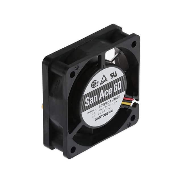 This is manufactured by Sanyo Denki America Inc.. The manufacturer part number is 109P0612W601. The blades are constructed from robust plastic materials. It is assigned with possible HTSUS value of 8414.59.6590. The product is rohs3 compliant. Furthermore, the product is 20.00mm wide. The product features power and watts of 1.56 w. It has a 14.8 cfm (0.414m³/min) air flow rate. It is approved by csa, tuv, ul. While the voltage range is 6 ~ 16vdc. It has noise values of 31.0db(a). It also exhibits voltage rating of 12vdc. This has integrated with a ball, a bearing with long-lasting features. The product has -4 ~ 158°f (-20 ~ 70°c) operating temperature range. It provides maximum rpm up to 4200 rpm. This product offers longer life span for 60000 hrs @ 60°c. The product has a 0.128 in h2o (31.8 pa) static pressure. It is shipped in box. The product's diameters include square - 60mm l x 60mm h. The product features 3 wire leads termination style. It has a long 55 weeks standard lead time. Additionally, the product's output is 0.130a Its typical moisture sensitivity level is not applicable. The splendid features of the product include locked rotor protection, speed sensor (tach). The typical product's weight is 0.199 lb (90.26 g). The product san ace 60, is a highly preferred choice for users. The frame of the product is made from highly durable plastic materials. The latest designed fan is a type of tubeaxial offering unmatchable applications. Moreover, it corresponds to 109p0612, a base product number of the product. The product is designated with the ear99 code number