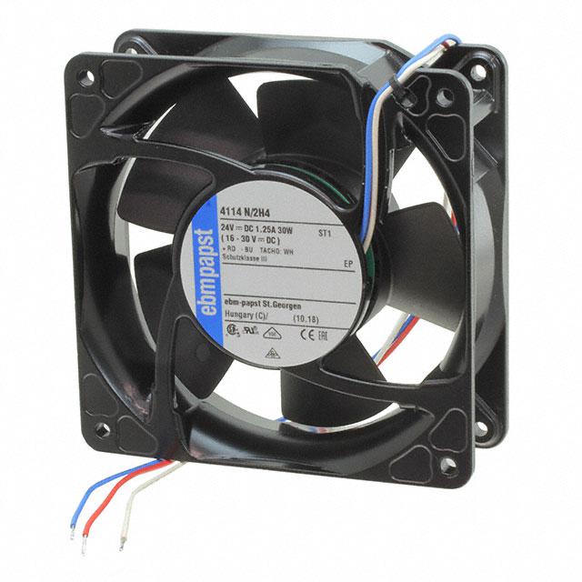 This is manufactured by ebm-papst Inc.. The manufacturer part number is 4114N/2H4. The blades are constructed from robust polyamide (pa), nylon, fiberglass reinforced materials. It is assigned with possible HTSUS value of 8414.59.6590. The product is rohs3 compliant. Furthermore, the product is 38.00mm wide. The product features power and watts of 30 w. It has a 209.0 cfm (5.85m³/min) air flow rate. While the voltage range is 16 ~ 30vdc. It has noise values of 73.0db(a). It also exhibits voltage rating of 24vdc. In addition, it is reach unaffected. This has integrated with a ball, a bearing with long-lasting features. The product has -4 ~ 149°f (-20 ~ 65°c) operating temperature range. It provides maximum rpm up to 6800 rpm. This product offers longer life span for 60000 hrs @ 40°c. It is shipped in bulk. The product's diameters include square - 119mm l x 119mm h. The product features 3 wire leads termination style. It has a long 69 weeks standard lead time. Its typical moisture sensitivity level is not applicable. The splendid features of the product include locked rotor protection, speed sensor (tach). The product 4100n, is a highly preferred choice for users. The frame of the product is made from highly durable aluminum materials. The latest designed fan is a type of tubeaxial offering unmatchable applications. Moreover, it corresponds to 4114n, a base product number of the product. The product is designated with the ear99 code number