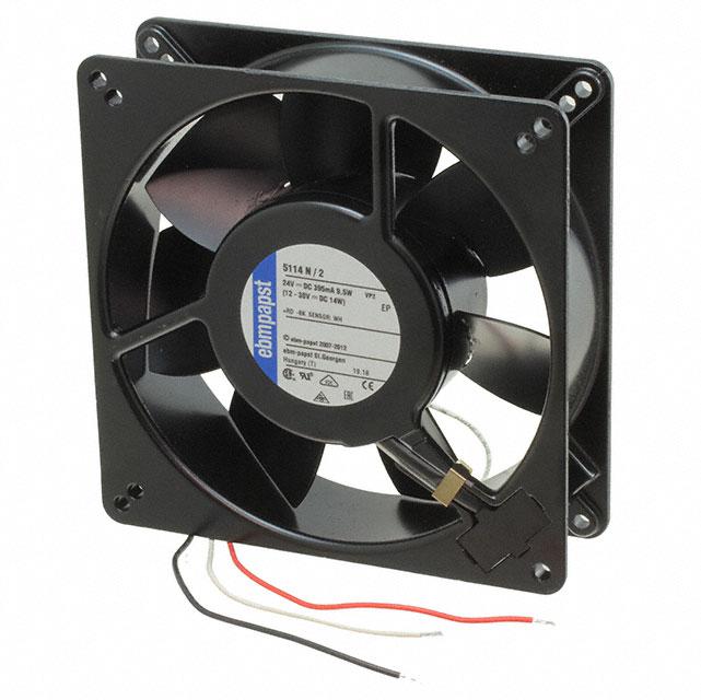 This is manufactured by ebm-papst Inc.. The manufacturer part number is 5114N/2. The blades are constructed from robust steel materials. It is assigned with possible HTSUS value of 8414.59.6590. The product is rohs3 compliant. Furthermore, the product is 38.00mm wide. The product features power and watts of 9.5 w. It has a 153.0 cfm (4.28m³/min) air flow rate. While the voltage range is 12 ~ 30vdc. It has noise values of 48.0db(a). It also exhibits voltage rating of 24vdc. In addition, it is reach unaffected. This has integrated with a ball, a bearing with long-lasting features. The product has -13 ~ 162°f (-25 ~ 72°c) operating temperature range. It provides maximum rpm up to 2900 rpm. This product offers longer life span for 80000 hrs @ 40°c. It is shipped in bulk. The product's diameters include square - 135mm l x 135mm h. The product features 3 wire leads termination style. It has a long 23 weeks standard lead time. Its typical moisture sensitivity level is not applicable. It is IP rated with ip54 - dust protected, water resistant. The splendid features of the product include speed sensor (tach). The typical product's weight is 1.4 lbs (650.0 g). The product 5100n, is a highly preferred choice for users. The frame of the product is made from highly durable aluminum materials. The latest designed fan is a type of tubeaxial offering unmatchable applications. Moreover, it corresponds to 5114n, a base product number of the product. The product is designated with the ear99 code number