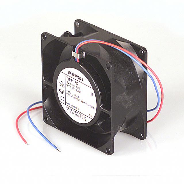 This is manufactured by ebm-papst Inc.. The manufacturer part number is 8112K. The blades are constructed from robust metal materials. It also exhibits voltage rating of 12vdc. Furthermore, the product is 38.00mm wide. The product features power and watts of 3 w. It has a 35.0 cfm (0.980m³/min) air flow rate. While the voltage range is 8 ~ 16vdc. It has noise values of 39.0db(a). It is assigned with possible HTSUS value of 8414.59.6590. In addition, it is reach unaffected. This has integrated with a ball, a bearing with long-lasting features. The product has -4 ~ 158°f (-20 ~ 70°c) operating temperature range. It provides maximum rpm up to 3450 rpm. This product offers longer life span for 85000 hrs @ 40°c. The product's diameters include square - 80mm l x 80mm h. The product features 2 wire leads termination style. Its typical moisture sensitivity level is 1 (unlimited). The typical product's weight is 0.937 lb (425.02 g). The product 8100, is a highly preferred choice for users. The frame of the product is made from highly durable metal materials. The latest designed fan is a type of tubeaxial offering unmatchable applications. The product is designated with the ear99 code number