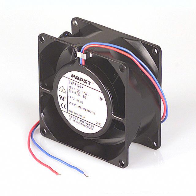 This is manufactured by ebm-papst Inc.. The manufacturer part number is 8124K. The blades are constructed from robust metal materials. It also exhibits voltage rating of 24vdc. Furthermore, the product is 38.00mm wide. The product features power and watts of 3 w. It has a 35.0 cfm (0.980m³/min) air flow rate. While the voltage range is 18 ~ 30vdc. It has noise values of 39.0db(a). It is assigned with possible HTSUS value of 8414.59.6590. In addition, it is reach unaffected. This has integrated with a ball, a bearing with long-lasting features. The product has -4 ~ 158°f (-20 ~ 70°c) operating temperature range. It provides maximum rpm up to 3450 rpm. This product offers longer life span for 85000 hrs @ 40°c. The product's diameters include square - 80mm l x 80mm h. The product features 2 wire leads termination style. Its typical moisture sensitivity level is 1 (unlimited). The typical product's weight is 0.937 lb (425.02 g). The product 8100, is a highly preferred choice for users. The frame of the product is made from highly durable metal materials. The latest designed fan is a type of tubeaxial offering unmatchable applications. The product is designated with the ear99 code number