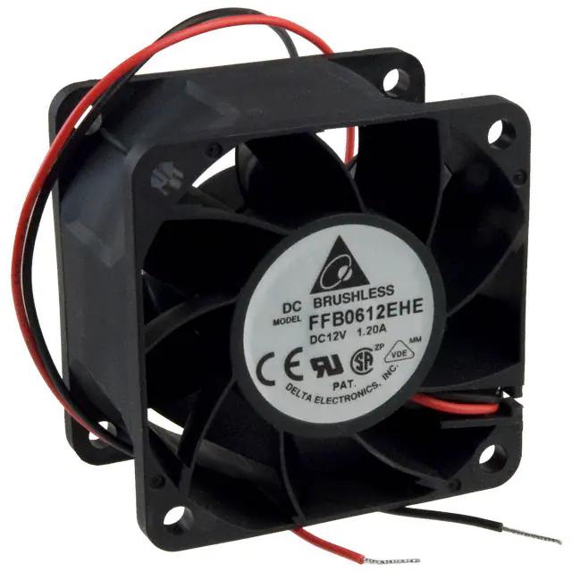 This is manufactured by Delta Electronics. The manufacturer part number is FFB0612VHE. The blades are constructed from robust plastic materials. It is assigned with possible HTSUS value of 8414.59.6590. The product is rohs3 compliant. Furthermore, the product is 38.00mm wide. The product features power and watts of 4.08 w. It has a 36.7 cfm (1.03m³/min) air flow rate. It is approved by ce, csa, ul, vde. While the voltage range is 4.5 ~ 13.8vdc. It has noise values of 46.5db(a). It also exhibits voltage rating of 12vdc. In addition, it is reach unaffected. This has integrated with a ball, a bearing with long-lasting features. The product has 14 ~ 158°f (-10 ~ 70°c) operating temperature range. It provides maximum rpm up to 6000 rpm. This product offers longer life span for 70000 hrs @ 40°c. The product has a 0.525 in h2o (130.8 pa) static pressure. It is shipped in tray. The product's diameters include square - 60mm l x 60mm h. The product features 2 wire leads termination style. Additionally, the product's output is 0.340a Its typical moisture sensitivity level is 1 (unlimited). The splendid features of the product include locked rotor protection. The typical product's weight is 0.234 lb (106.14 g). The product ffb, is a highly preferred choice for users. The frame of the product is made from highly durable plastic materials. The latest designed fan is a type of tubeaxial offering unmatchable applications. The product is designated with the ear99 code number