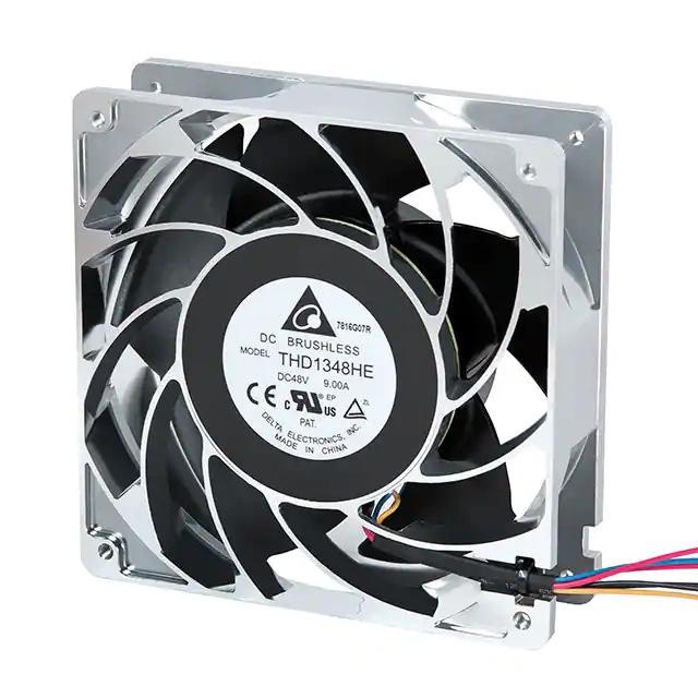 This is manufactured by Delta Electronics. The manufacturer part number is THD1348HE. The blades are constructed from robust plastic materials. It is assigned with possible HTSUS value of 8414.59.6590. The product is rohs3 compliant. Furthermore, the product is 38.00mm wide. The product features power and watts of 240 w. It has a 490.0 cfm (13.72m³/min) air flow rate. It is approved by ce, curus, tuv. While the voltage range is 36 ~ 60vdc. It has noise values of 82.0db(a). It also exhibits voltage rating of 48vdc. In addition, it is reach unaffected. This has integrated with a ball, a bearing with long-lasting features. The product has 14 ~ 158°f (-10 ~ 70°c) operating temperature range. It provides maximum rpm up to 12500 rpm. This product offers longer life span for 70000 hrs @ 40°c. The product has a 7.100 in h2o (1768.5 pa) static pressure. It is shipped in bulk. The product's diameters include square - 134mm l x 134mm h. The product features 4 wire leads termination style. Additionally, the product's output is 5.00a Its typical moisture sensitivity level is not applicable. The splendid features of the product include locked rotor protection, pwm control, speed sensor (tach). The typical product's weight is 1.6 lbs (725.7 g). The product thd - bionic blade, is a highly preferred choice for users. The frame of the product is made from highly durable aluminum materials. The latest designed fan is a type of tubeaxial offering unmatchable applications. Moreover, it corresponds to thd1348, a base product number of the product. The product is designated with the ear99 code number