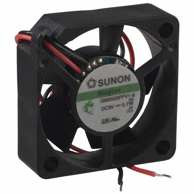 This is manufactured by Sunon Fans. The manufacturer part number is GM0503PFV1-8.GN. The blades are constructed from robust polybutylene terephthalate (pbt) materials. It is assigned with possible HTSUS value of 8414.59.6590. The product is rohs3 compliant. Furthermore, the product is 10.00mm wide. The product features power and watts of 700 mw. It has a 5.5 cfm (0.154m³/min) air flow rate. It is approved by ce, cur, tuv, ul. While the voltage range is 3 ~ 6vdc. It has noise values of 23.0db(a). It also exhibits voltage rating of 5vdc. In addition, it is reach unaffected. This has integrated with a vapo-bearing™, a bearing with long-lasting features. The product has 14 ~ 158°f (-10 ~ 70°c) operating temperature range. It provides maximum rpm up to 9500 rpm. The product has a 0.150 in h2o (37.4 pa) static pressure. It is shipped in bulk. The product's diameters include square - 30mm l x 30mm h. The product features 2 wire leads termination style. Additionally, the product's output is 0.140a Its typical moisture sensitivity level is not applicable. The typical product's weight is 0.019 lb (8.62 g). The product maglev® gm, is a highly preferred choice for users. The frame of the product is made from highly durable polybutylene terephthalate (pbt) materials. The latest designed fan is a type of tubeaxial offering unmatchable applications. The product is designated with the ear99 code number