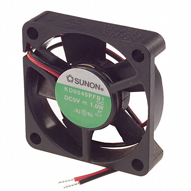 This is manufactured by Sunon Fans. The manufacturer part number is KD0545PFB1(OC). The blades are constructed from robust polybutylene terephthalate (pbt) materials. It is assigned with possible HTSUS value of 8414.59.6590. The product is rohs non-compliant. Furthermore, the product is 10.50mm wide. The product features power and watts of 1 w. It has a 9.5 cfm (0.266m³/min) air flow rate. It is approved by ce, cur, tuv, ul. While the voltage range is 3.5 ~ 6vdc. It has noise values of 32.0db(a). It also exhibits voltage rating of 5vdc. In addition, it is reach unaffected. This has integrated with a ball, a bearing with long-lasting features. The product has 14 ~ 158°f (-10 ~ 70°c) operating temperature range. It provides maximum rpm up to 7000 rpm. The product has a 0.160 in h2o (39.8 pa) static pressure. The product's diameters include square - 45mm l x 45mm h. The product features 2 wire leads termination style. Additionally, the product's output is 0.210a Its typical moisture sensitivity level is not applicable. The typical product's weight is 0.044 lb (19.96 g). The product kd, is a highly preferred choice for users. The frame of the product is made from highly durable polybutylene terephthalate (pbt) materials. The latest designed fan is a type of tubeaxial offering unmatchable applications. The product is designated with the ear99 code number