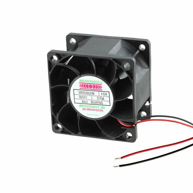 This is manufactured by Mechatronics Fan Group. The manufacturer part number is ME6038L24B-FSR. The blades are constructed from robust polybutylene terephthalate (pbt) materials. It is assigned with possible HTSUS value of 8414.59.6590. The product is rohs compliant. Furthermore, the product is 38.00mm wide. It has a 35.5 cfm (0.994m³/min) air flow rate. It is approved by cul, ul. It has noise values of 48.5db(a). It also exhibits voltage rating of 24vdc. This has integrated with a ball, a bearing with long-lasting features. It provides maximum rpm up to 6000 rpm. The product has a 0.520 in h2o (129.5 pa) static pressure. It is shipped in bulk. The product's diameters include square - 60mm l x 60mm h. The product features 2 wire leads termination style. It has a long 26 weeks standard lead time. Its typical moisture sensitivity level is not applicable. The splendid features of the product include thermal overload protector (top). The typical product's weight is 0.23 lb (104.33 g). The product me6038, is a highly preferred choice for users. The frame of the product is made from highly durable polybutylene terephthalate (pbt) materials. The latest designed fan is a type of tubeaxial offering unmatchable applications. Moreover, it corresponds to me6038, a base product number of the product. The product is designated with the ear99 code number
