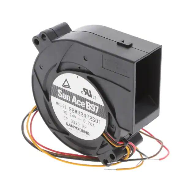 This is manufactured by Sanyo Denki America Inc.. The manufacturer part number is 9BMB24P2S01. The blades are constructed from robust plastic materials. It is assigned with possible HTSUS value of 8414.59.6560. The product is rohs3 compliant. Furthermore, the product is 33.00mm wide. The product features power and watts of 16.8 w. It has a 43.1 cfm (1.21m³/min) air flow rate. It is approved by curus, tuv. While the voltage range is 21.6 ~ 26.4vdc. It has noise values of 59.0db(a). It also exhibits voltage rating of 24vdc. This has integrated with a ball, a bearing with long-lasting features. The product has -4 ~ 158°f (-20 ~ 70°c) operating temperature range. It provides maximum rpm up to 5250 rpm. This product offers longer life span for 40000 hrs @ 60°c. The product has a 2.450 in h2o (610.0 pa) static pressure. It is shipped in box. The product's diameters include rectangular/rounded - 97.1mm l x 95mm h. The product features 4 wire leads termination style. It has a long 55 weeks standard lead time. Additionally, the product's output is 0.700a Its typical moisture sensitivity level is not applicable. The splendid features of the product include locked rotor protection, pwm control, speed sensor (tach). The typical product's weight is 0.419 lb (190.06 g). The product san ace b97, is a highly preferred choice for users. The frame of the product is made from highly durable plastic materials. The latest designed fan is a type of blower offering unmatchable applications. Moreover, it corresponds to 9bmb24, a base product number of the product. The product is designated with the ear99 code number