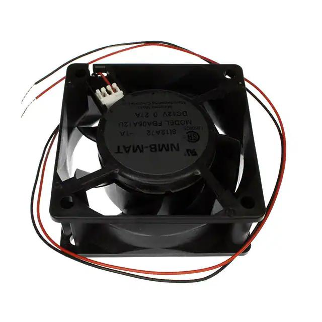 This is manufactured by NMB Technologies Corporation. The manufacturer part number is FBA06A12U1A. It also exhibits voltage rating of 12vdc. Furthermore, the product is 25.50mm wide. The product features power and watts of 2.52 w. It has a 20.5 cfm (0.574m³/min) air flow rate. It is approved by csa, ul. While the voltage range is 7 ~ 13.8vdc. It has noise values of 58.0db. It is assigned with possible HTSUS value of 8414.59.6590. In addition, it is reach unaffected. This has integrated with a hydro-wave (hwb), a bearing with long-lasting features. The product has 14 ~ 158°f (-10 ~ 70°c) operating temperature range. It provides maximum rpm up to 4550 rpm. This product offers longer life span for 50000 hrs @ 40°c. The product has a 0.233 in h2o (58.0 pa) static pressure. The product's diameters include square - 60mm l x 60mm h. The product features 2 wire leads termination style. Additionally, the product's output is 0.210a Its typical moisture sensitivity level is not applicable. The typical product's weight is 0.198 lb (89.81 g). The product fba, is a highly preferred choice for users. The latest designed fan is a type of tubeaxial offering unmatchable applications. The product is designated with the ear99 code number