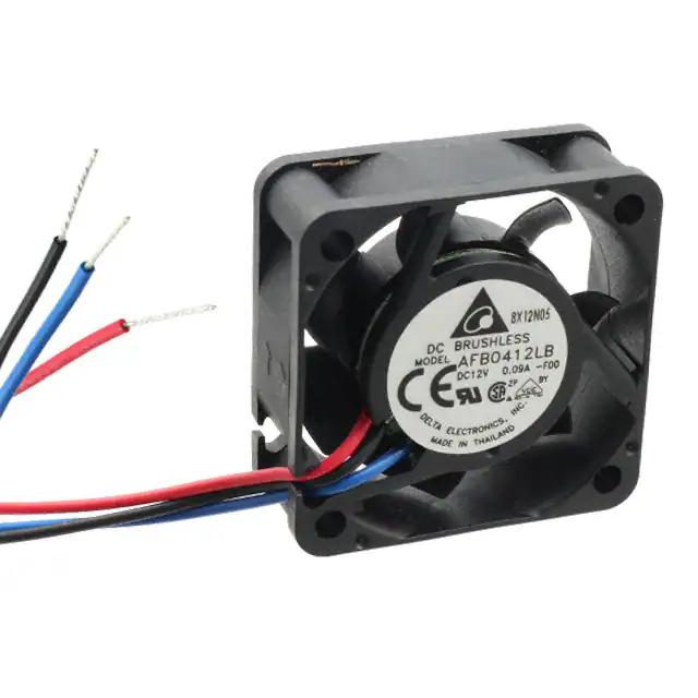 This is manufactured by Delta Electronics. The manufacturer part number is AFB0412LB-F00. The blades are constructed from robust plastic materials. It is assigned with possible HTSUS value of 8414.59.6590. The product is rohs3 compliant. Furthermore, the product is 15.00mm wide. The product features power and watts of 720 mw. It has a 6.5 cfm (0.182m³/min) air flow rate. It is approved by ce, csa, ul, vde. While the voltage range is 7 ~ 13.8vdc. It has noise values of 18.5db(a). It also exhibits voltage rating of 12vdc. In addition, it is reach unaffected. This has integrated with a ball, a bearing with long-lasting features. The product has 14 ~ 158°f (-10 ~ 70°c) operating temperature range. It provides maximum rpm up to 5000 rpm. This product offers longer life span for 70000 hrs @ 40°c. The product has a 0.144 in h2o (35.9 pa) static pressure. It is shipped in box. The product's diameters include square - 40mm l x 40mm h. The product features 3 wire leads termination style. Additionally, the product's output is 0.060a Its typical moisture sensitivity level is not applicable. The splendid features of the product include locked rotor protection, speed sensor (tach). The typical product's weight is 0.057 lb (25.85 g). The product afb, is a highly preferred choice for users. The frame of the product is made from highly durable plastic materials. The latest designed fan is a type of tubeaxial offering unmatchable applications. Moreover, it corresponds to afb0412, a base product number of the product. The product is designated with the ear99 code number
