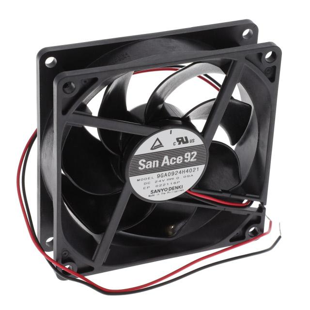 This is manufactured by Sanyo Denki America Inc.. The manufacturer part number is 9GA0924H4021. The blades are constructed from robust plastic materials. It is assigned with possible HTSUS value of 8414.59.6590. The product is rohs3 compliant. Furthermore, the product is 25.00mm wide. The product features power and watts of 2.16 w. It also exhibits voltage rating of 24vdc. This has integrated with a ball, a bearing with long-lasting features. It is shipped in box. The product's diameters include square - 92mm l x 92mm h. The product features 2 wire leads termination style. It has a long 55 weeks standard lead time. Its typical moisture sensitivity level is 1 (unlimited). The splendid features of the product include locked rotor protection. The product san ace 92, is a highly preferred choice for users. The frame of the product is made from highly durable plastic materials. The latest designed fan is a type of tubeaxial offering unmatchable applications. Moreover, it corresponds to 9ga0924, a base product number of the product. The product is designated with the ear99 code number