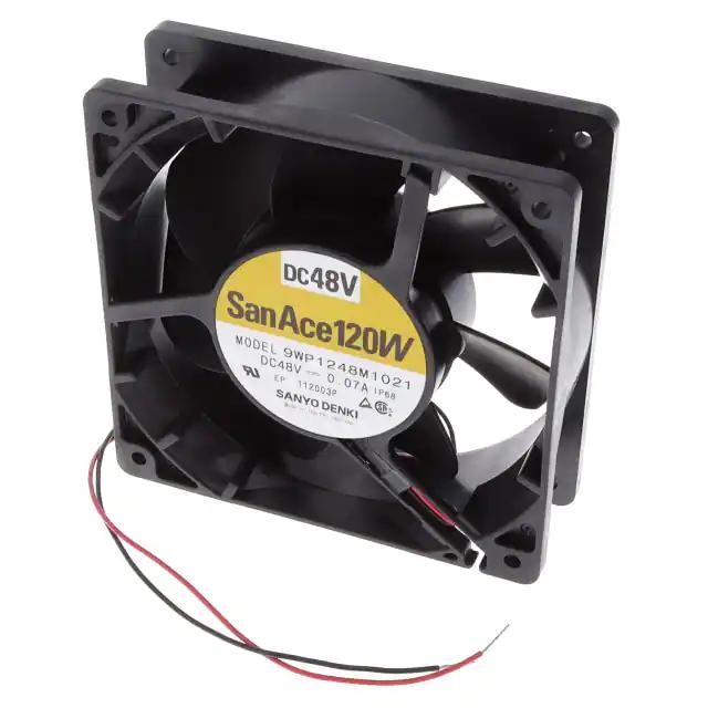 This is manufactured by Sanyo Denki America Inc.. The manufacturer part number is 9WP1248M1021. The blades are constructed from robust plastic materials. It is assigned with possible HTSUS value of 8414.59.6590. The product is rohs3 compliant. Furthermore, the product is 38.00mm wide. The product features power and watts of 3.36 w. It also exhibits voltage rating of 48vdc. This has integrated with a ball, a bearing with long-lasting features. It is shipped in box. The product's diameters include square - 120mm l x 120mm h. The product features 2 wire leads termination style. It has a long 55 weeks standard lead time. Its typical moisture sensitivity level is 1 (unlimited). It is IP rated with ip68 - dust tight, waterproof. The splendid features of the product include locked rotor protection. The product san ace 120w, is a highly preferred choice for users. The frame of the product is made from highly durable plastic materials. The latest designed fan is a type of tubeaxial offering unmatchable applications. Moreover, it corresponds to 9wp1248, a base product number of the product. The product is designated with the ear99 code number