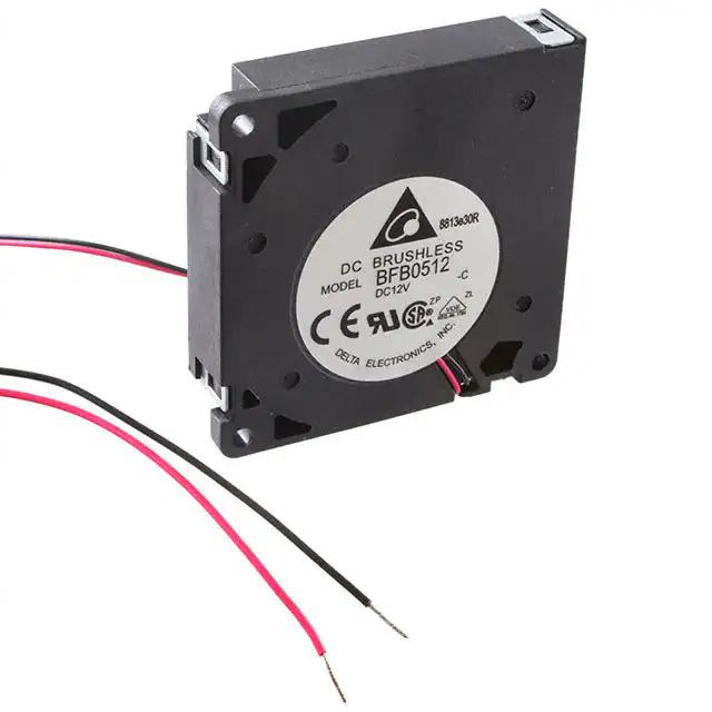 This is manufactured by Delta Electronics. The manufacturer part number is BFB0512MA-C. The blades are constructed from robust plastic materials. It is assigned with possible HTSUS value of 8414.59.6560. The product is rohs3 compliant. Furthermore, the product is 10.30mm wide. The product features power and watts of 840 mw. It has a 2.9 cfm (0.081m³/min) air flow rate. It is approved by ce, csa, ul, vde. While the voltage range is 7 ~ 13.2vdc. It has noise values of 28.0db(a). It also exhibits voltage rating of 12vdc. In addition, it is reach unaffected. This has integrated with a ball, a bearing with long-lasting features. The product has 14 ~ 158°f (-10 ~ 70°c) operating temperature range. It provides maximum rpm up to 4300 rpm. This product offers longer life span for 30000 hrs @ 40°c. The product has a 0.383 in h2o (95.4 pa) static pressure. It is shipped in box. The product's diameters include square - 50mm l x 50mm h. The product features 2 wire leads termination style. Additionally, the product's output is 0.070a Its typical moisture sensitivity level is 1 (unlimited). The splendid features of the product include locked rotor protection. The typical product's weight is 0.05 lb (22.68 g). The product bfb, is a highly preferred choice for users. The frame of the product is made from highly durable plastic materials. The latest designed fan is a type of blower offering unmatchable applications. Moreover, it corresponds to bfb0512, a base product number of the product. The product is designated with the ear99 code number