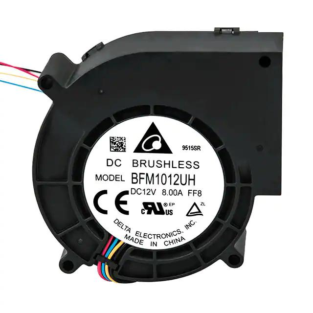 This is manufactured by Delta Electronics. The manufacturer part number is BFM1012UHFF8. The blades are constructed from robust plastic materials. It is assigned with possible HTSUS value of 8414.59.6560. The product is rohs3 compliant. Furthermore, the product is 32.90mm wide. The product features power and watts of 69.6 w. It has a 66.0 cfm (1.85m³/min) air flow rate. It is approved by ce, curus, tuv. While the voltage range is 10.8 ~ 12.6vdc. It has noise values of 70.5db(a). It also exhibits voltage rating of 12vdc. In addition, it is reach unaffected. This has integrated with a ball, a bearing with long-lasting features. The product has 14 ~ 140°f (-10 ~ 60°c) operating temperature range. It provides maximum rpm up to 8700 rpm. This product offers longer life span for 70000 hrs @ 40°c. The product has a 6.806 in h2o (1695.3 pa) static pressure. It is shipped in box. The product's diameters include rectangular/rounded - 96.6mm l x 94.3mm h. The product features 8 position rectangular connector termination style. Additionally, the product's output is 5.80a Its typical moisture sensitivity level is not applicable. The splendid features of the product include locked rotor protection, pwm control, speed sensor (tach). The typical product's weight is 0.452 lb (205.02 g). The product bfm - high-perfomance, is a highly preferred choice for users. The frame of the product is made from highly durable plastic materials. The latest designed fan is a type of blower offering unmatchable applications. Moreover, it corresponds to bfm1012, a base product number of the product. The product is designated with the ear99 code number