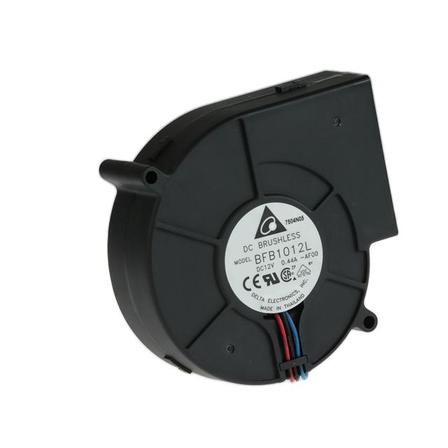 This is manufactured by Delta Electronics. The manufacturer part number is BFB1012L-AF00. The blades are constructed from robust plastic materials. It is assigned with possible HTSUS value of 8414.59.6560. The product is rohs3 compliant. Furthermore, the product is 33.00mm wide. The product features power and watts of 4.4 w. It has a 23.2 cfm (0.650m³/min) air flow rate. It is approved by ce, csa, ul, vde. While the voltage range is 3.5 ~ 13.2vdc. It has noise values of 49.5db(a). It also exhibits voltage rating of 12vdc. In addition, it is reach unaffected. This has integrated with a ball, a bearing with long-lasting features. The product has 14 ~ 140°f (-10 ~ 60°c) operating temperature range. It provides maximum rpm up to 2700 rpm. This product offers longer life span for 50000 hrs @ 40°c. The product has a 0.585 in h2o (145.7 pa) static pressure. It is shipped in box. The product's diameters include rectangular/rounded - 97.8mm l x 95.5mm h. The product features 3 wire leads termination style. Additionally, the product's output is 0.370a Its typical moisture sensitivity level is 1 (unlimited). The splendid features of the product include locked rotor protection, speed sensor (tach). The typical product's weight is 0.397 lb (180.08 g). The product bfb, is a highly preferred choice for users. The frame of the product is made from highly durable plastic materials. The latest designed fan is a type of blower offering unmatchable applications. Moreover, it corresponds to bfb1012, a base product number of the product. The product is designated with the ear99 code number