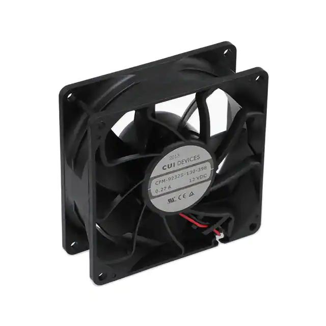 This is manufactured by CUI Devices. The manufacturer part number is CFM-9232S-130-398. The blades are constructed from robust polybutylene terephthalate (pbt) materials. It is assigned with possible HTSUS value of 8414.59.6590. The product is rohs3 compliant. Furthermore, the product is 32.00mm wide. The product features power and watts of 4.08 w. It has a 61.7 cfm (1.73m³/min) air flow rate. It is approved by ce, curus, tuv. While the voltage range is 10.8 ~ 13.2vdc. It has noise values of 39.9db(a). It also exhibits voltage rating of 12vdc. In addition, it is reach unaffected. This has integrated with a sleeve, a bearing with long-lasting features. The product has 14 ~ 158°f (-10 ~ 70°c) operating temperature range. It provides maximum rpm up to 3000 rpm. This product offers longer life span for 30000 hrs @ 25°c. The product has a 0.220 in h2o (54.8 pa) static pressure. It is shipped in box. The product's diameters include square - 92.2mm l x 92.2mm h. The product features 2 wire leads termination style. It has a long 10 weeks standard lead time. Additionally, the product's output is 0.340a Its typical moisture sensitivity level is 1 (unlimited). The splendid features of the product include auto restart. The product cfm-92s, is a highly preferred choice for users. The frame of the product is made from highly durable polybutylene terephthalate (pbt) materials. The latest designed fan is a type of tubeaxial offering unmatchable applications. Moreover, it corresponds to cfm-9232, a base product number of the product. The product is designated with the ear99 code number