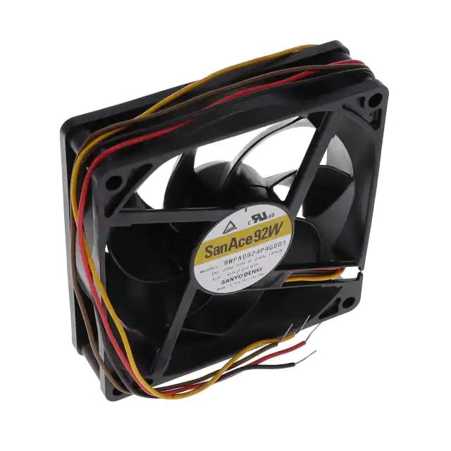 This is manufactured by Sanyo Denki America Inc.. The manufacturer part number is 9WPA0924P4G001. The blades are constructed from robust plastic materials. It is assigned with possible HTSUS value of 8414.59.6590. The product is rohs3 compliant. Furthermore, the product is 25.20mm wide. The product features power and watts of 6 w. It has a 86.5 cfm (2.42m³/min) air flow rate. While the voltage range is 21.6 ~ 26.4vdc. It has noise values of 47.0db(a). It also exhibits voltage rating of 24vdc. This has integrated with a ball, a bearing with long-lasting features. The product has -4 ~ 158°f (-20 ~ 70°c) operating temperature range. It provides maximum rpm up to 5700 rpm. This product offers longer life span for 40000 hrs @ 60°c. The product has a 0.510 in h2o (127.0 pa) static pressure. It is shipped in box. The product's diameters include square - 92mm l x 92mm h. The product features 4 wire leads termination style. It has a long 55 weeks standard lead time. Additionally, the product's output is 0.250a Its typical moisture sensitivity level is not applicable. It is IP rated with ip68 - dust tight, waterproof. The splendid features of the product include locked rotor protection, pwm control, speed sensor (tach). The product san ace 92w, is a highly preferred choice for users. The frame of the product is made from highly durable plastic materials. The latest designed fan is a type of tubeaxial offering unmatchable applications. Moreover, it corresponds to 9wpa0924, a base product number of the product. The product is designated with the ear99 code number