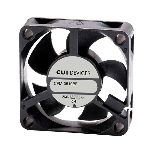 This is manufactured by CUI Devices. The manufacturer part number is CFM-3510BF-170-222-22. The blades are constructed from robust polybutylene terephthalate (pbt) materials. It is assigned with possible HTSUS value of 8414.59.6590. The product is rohs compliant. Furthermore, the product is 10.30mm wide. The product features power and watts of 1.08 w. It has a 4.6 cfm (0.129m³/min) air flow rate. It is approved by ce, curus, tuv. While the voltage range is 10.8 ~ 13.2vdc. It has noise values of 22.3db(a). It also exhibits voltage rating of 12vdc. In addition, it is reach unaffected. This has integrated with a ball, a bearing with long-lasting features. The product has 14 ~ 158°f (-10 ~ 70°c) operating temperature range. It provides maximum rpm up to 7000 rpm. This product offers longer life span for 70000 hrs @ 40°c. The product has a 0.100 in h2o (24.9 pa) static pressure. It is shipped in box. The product's diameters include square - 35mm l x 35mm h. The product features 4 wire leads termination style. It has a long 20 weeks standard lead time. Additionally, the product's output is 0.090a Its typical moisture sensitivity level is not applicable. The splendid features of the product include pwm control, speed sensor (tach). The product cfm-35bf, is a highly preferred choice for users. The frame of the product is made from highly durable polybutylene terephthalate (pbt) materials. The latest designed fan is a type of tubeaxial offering unmatchable applications. The product is designated with the ear99 code number