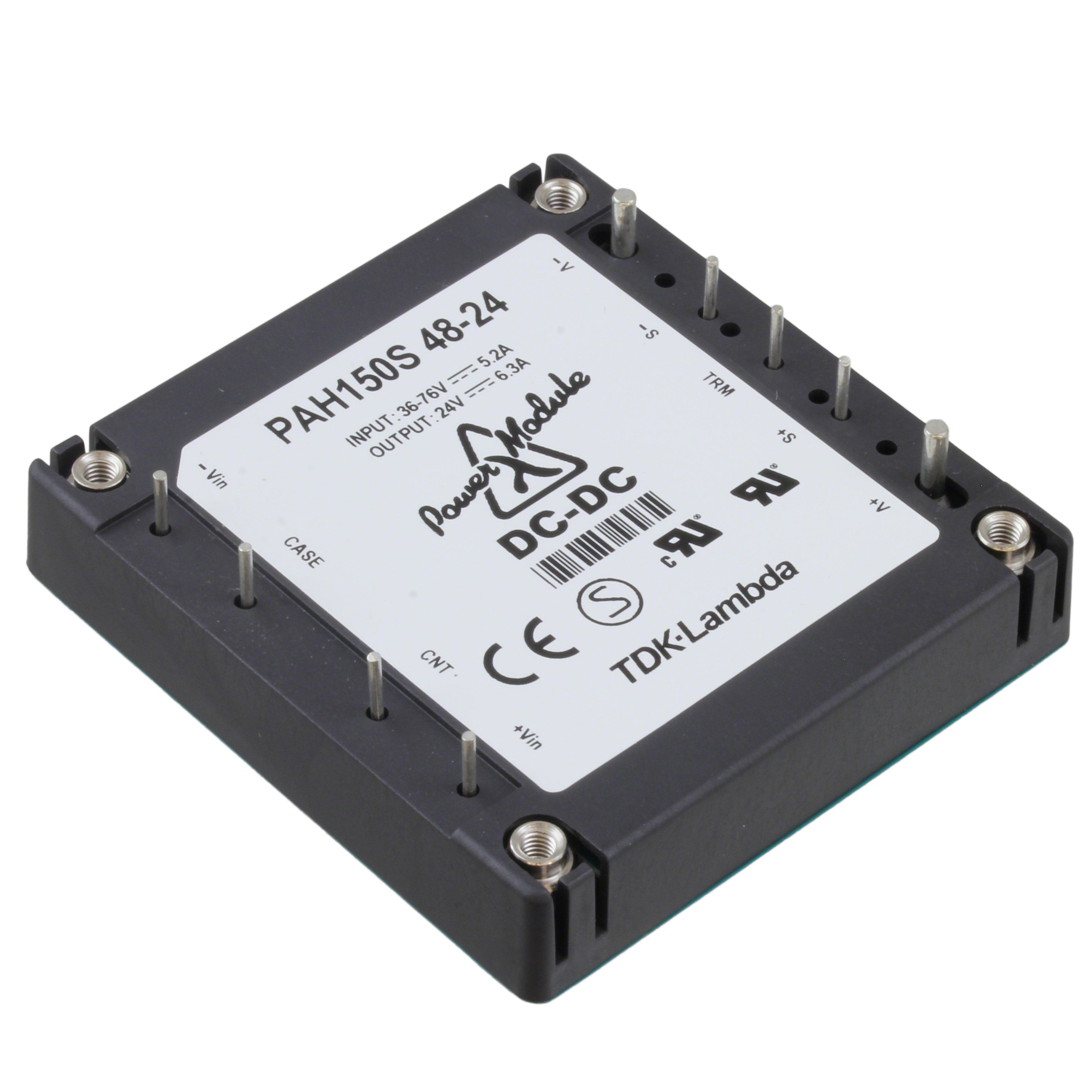 This is manufactured by TDK-Lambda Americas Inc.. The manufacturer part number is PAH150S48-24. It is assigned with possible HTSUS value of 8504.40.9580. The product is rohs compliant. The product features power and watts of 150 w. The maximum product's output current is 6.3a. Moreover, the product comes in [Package/ Case]. It offers 36v of minimum input voltage. It comes in isolated module configuration. The product is widely employed in ite (commercial). It has a 24v output voltage. It is a highly efficient product with an 88% of high efficiency. Its maximum input voltage is 76v. Possible control features include enable, active low. It is shipped in bulk. The product's diameters include 2.40" l x 2.28" w x 0.50" h (61.0mm x 57.9mm x 12.7mm). 1.5 kv of isolation voltage. Its typical moisture sensitivity level is 1 (unlimited). The splendid features of the product include remote on/off, ocp, otp, ovp. The product is available in through hole configuration. The product pah (150w), is a highly preferred choice for users. The product has -40°c ~ 100°c operating temperature range. Additionally, the product is supplied with 1 outputs. The product is designated with the ear99 code number