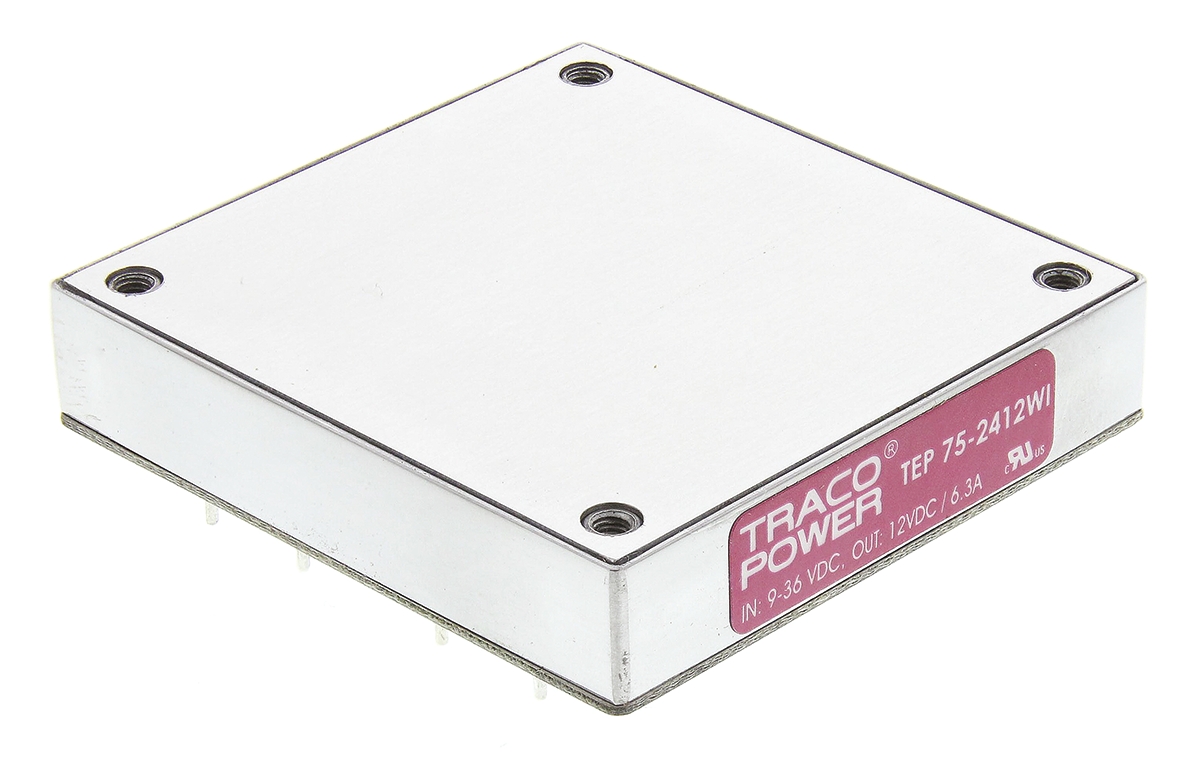 This is Through Hole 75W Isolated DC-DC Converter Vin 9 to 36 V dc Medical Approved Railway Approved manufactured by TRACOPOWER. The manufacturer part number is TEP 75-2412WI. Additionally, the product is supplied with 1 outputs. Load Regulation - ±0.3%. The product is available in through hole configuration. It is shipped in 1/2 brick. The product tep 75wi, is a highly preferred choice for users. The product comes in 12.7mm depth. Its accurate length is 61mm.