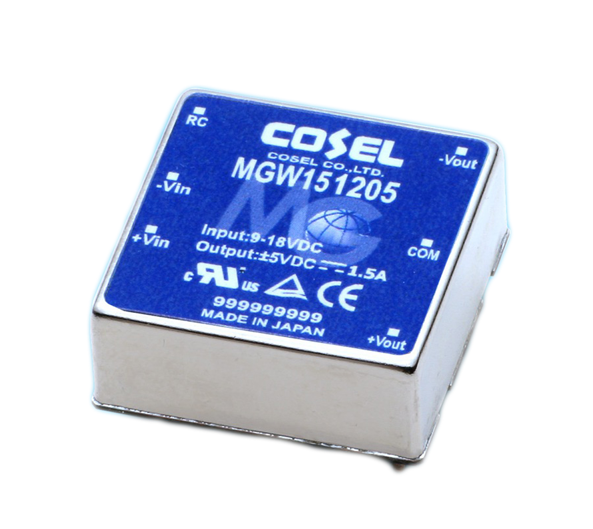 This is 15W Isolated DC-DC Converter Through Hole Vin 9 → 18 V dc Vout ±5V dc I/O isolation 1.5kV manufactured by Cosel. The manufacturer part number is MGW151205. Additionally, the product is supplied with 2 outputs. Load Regulation - 500mv. The product is available in through hole configuration. Its accurate length is 25.4mm. It is a highly efficient product with an 84% of high efficiency. The product comes in 9.9mm depth.