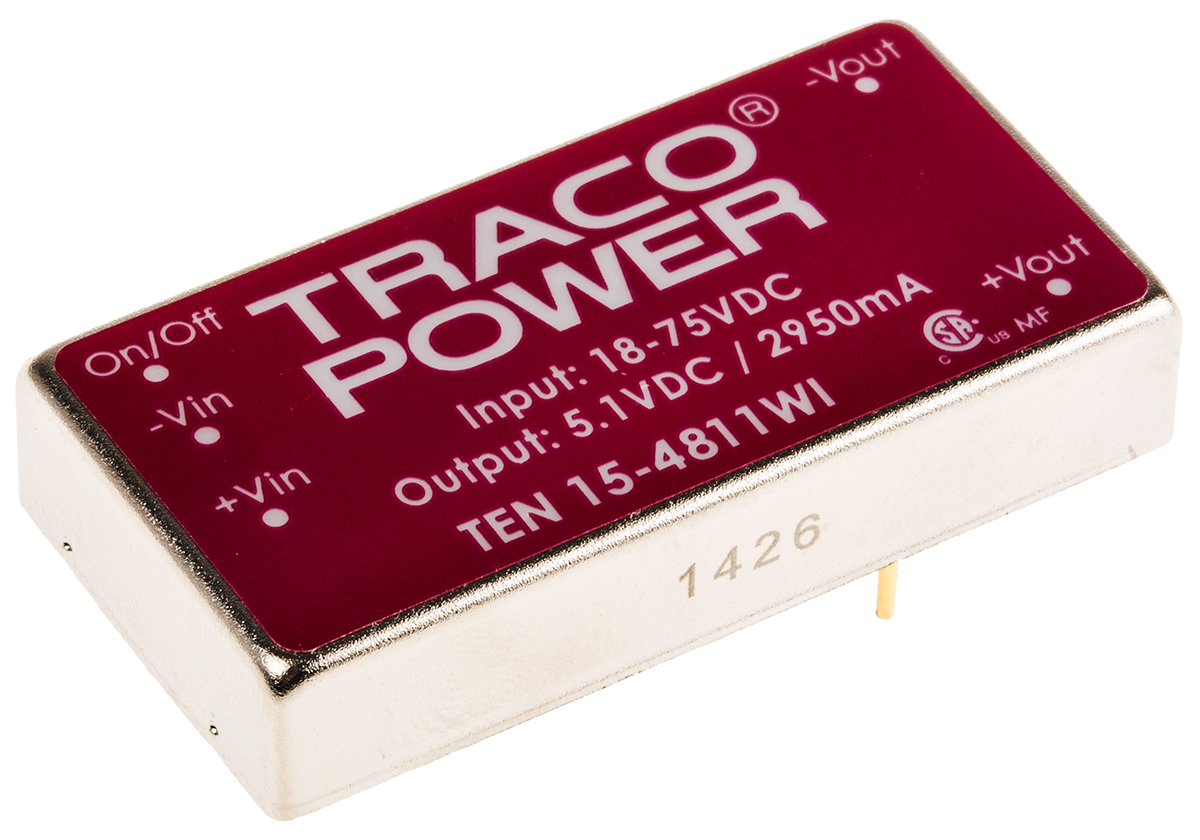 This is TEN 15WI 15W Isolated DC-DC Converter Through Hole Vin 18 → 75 V dc Vout 5.1V dc manufactured by TRACOPOWER. The manufacturer part number is TEN 15-4811WI. Additionally, the product is supplied with 1 outputs. The product is available in through hole configuration. The product ten 15wi, is a highly preferred choice for users. Its accurate length is 25.4mm. The product comes in 10.2mm depth.