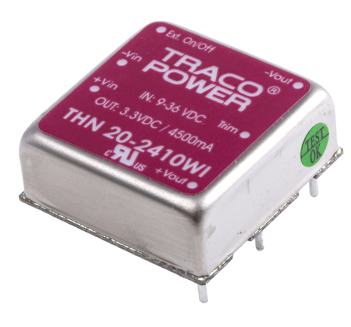 This is THN 20WI 20W Isolated DC-DC Converter Through Hole Vin 9 → 36 V dc Vout 3.3V dc manufactured by TRACOPOWER. The manufacturer part number is THN 20-2410WI. Additionally, the product is supplied with 1 outputs. Load Regulation - ±1%. The product is available in through hole configuration. It is shipped in 1 x 1 in. The product thn 20wi, is a highly preferred choice for users. It is a highly efficient product with an 86% of high efficiency. The product comes in 9.9mm depth. Its accurate length is 25.4mm.