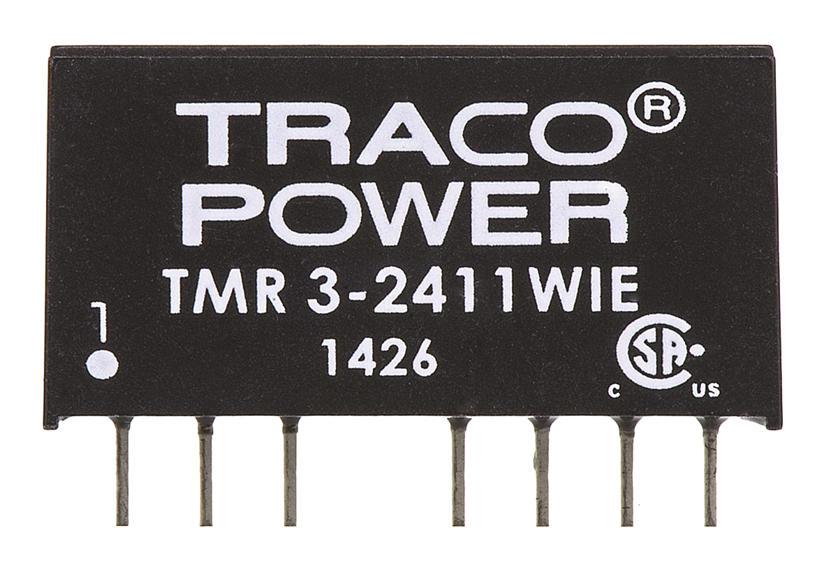 This is TMR 3WIE 3W Isolated DC-DC Converter Through Hole Vin 9 → 36 V dc Vout 5V dc manufactured by TRACOPOWER. The manufacturer part number is TMR 3-2411WIE. Additionally, the product is supplied with 1 outputs. Load Regulation - 0.01. The product is available in through hole configuration. It is shipped in sip 8. The product tmr 3wie, is a highly preferred choice for users. It is a highly efficient product with an 80% of high efficiency. The product comes in 11.2mm depth. Its accurate length is 21.8mm.