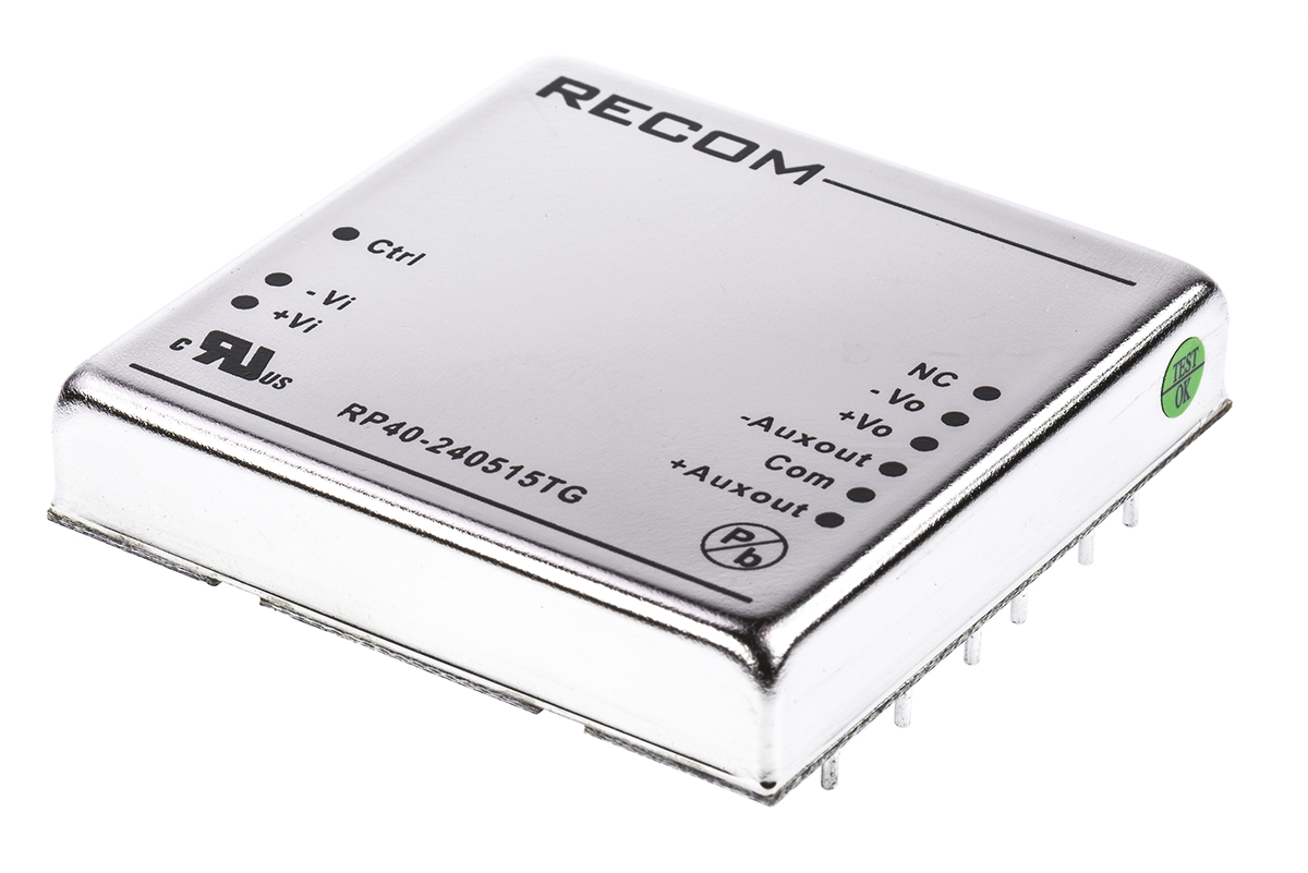 This is RP40 G 40W Isolated DC-DC Converter Through Hole Vin 18 → 36 V dc Vout 5/±15V dc manufactured by Recom. The manufacturer part number is RP40-240515TG. Additionally, the product is supplied with 3 outputs. The product is available in through hole configuration. The product rp40-g, is a highly preferred choice for users. Its accurate length is 50.8mm. The product comes in 10.2mm depth.
