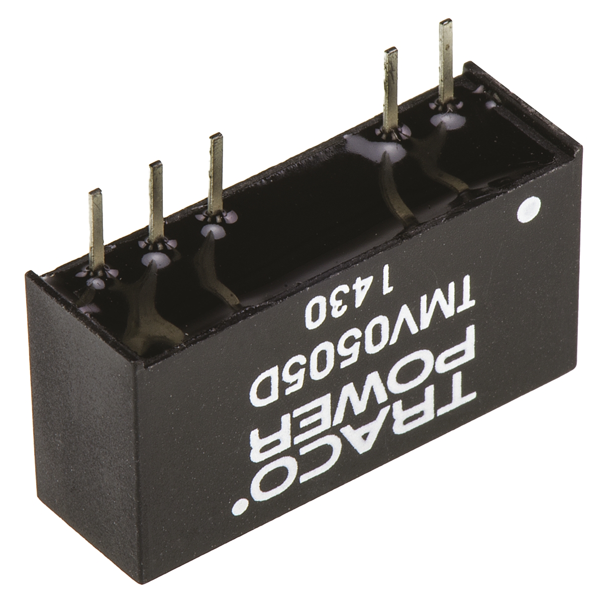 This is TMV 1W Isolated DC-DC Converter Through Hole Vin 4.5 → 5.5 V dc Vout ±5V dc I/O isolation 3kV dc manufactured by TRACOPOWER. The manufacturer part number is TMV 0505D. Additionally, the product is supplied with 2 outputs. Load Regulation - ±10%. It is a highly efficient product with an 72% of high efficiency. The product is available in through hole configuration. It is shipped in sip 7. The product tmv, is a highly preferred choice for users. Its accurate length is 19.5mm. Furthermore, the product is 6.1mm wide. The product comes in 10.2mm depth.