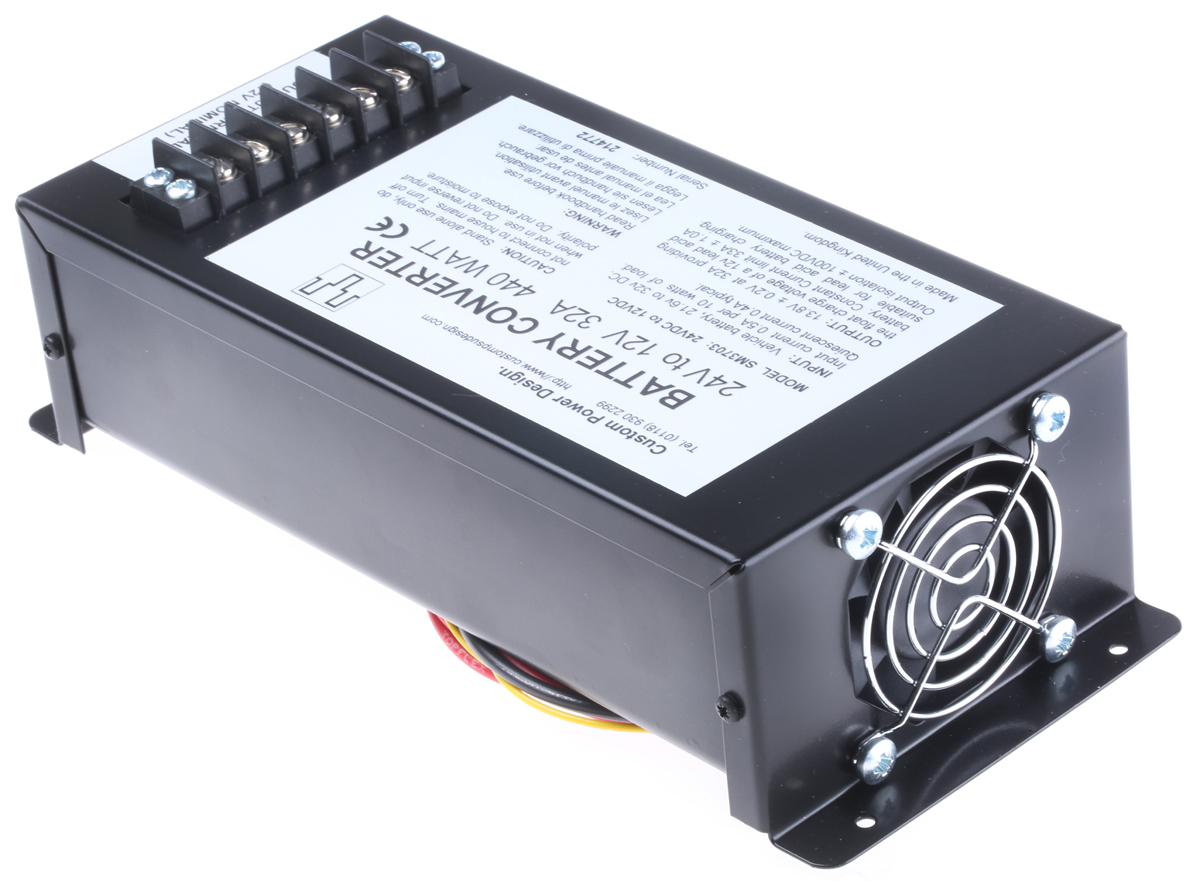 This is 440W Fixed Installation Car Power Adapter 24V dc / 13.8V dc manufactured by Custom Power Design. The manufacturer part number is SM3703. The product is available in mounting bracket configuration. It is a highly efficient product with an 0.85 of high efficiency. Its accurate length is 247mm. Furthermore, the product is 103mm wide. The product comes in 63mm depth.