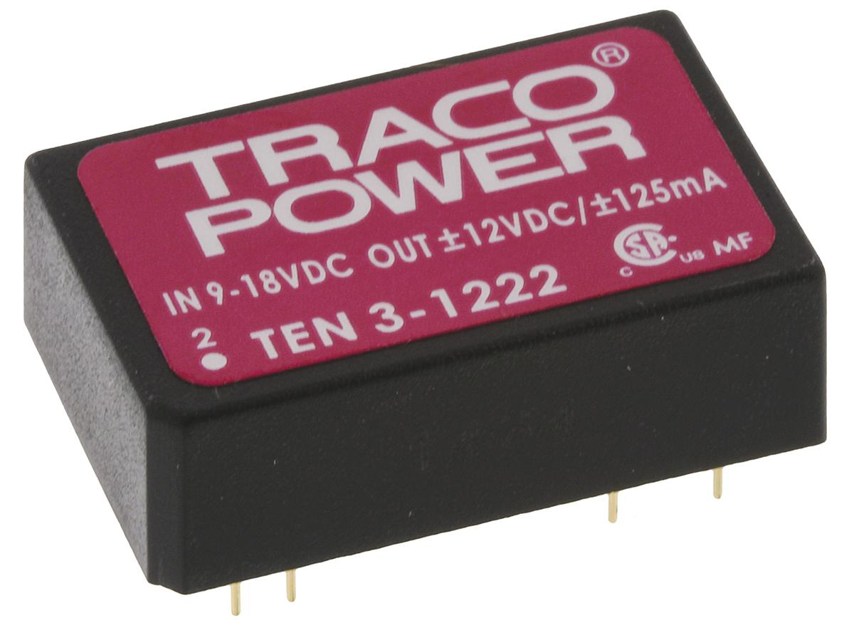 This is TEN 3 3W Isolated DC-DC Converter Through Hole Vin 9 → 18 V dc Vout ±12V dc manufactured by TRACOPOWER. The manufacturer part number is TEN 3-1222. Additionally, the product is supplied with 2 outputs. Load Regulation - ±2%. The product is available in through hole configuration. It is shipped in dip 24. The product ten 3, is a highly preferred choice for users. It is a highly efficient product with an 80% of high efficiency. The product comes in 10.2mm depth. Its accurate length is 32mm.