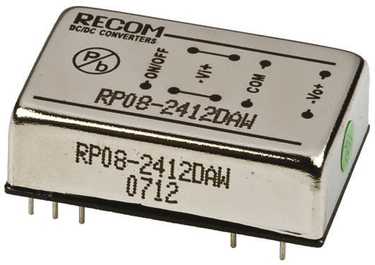 This is RP08 AW 8W Isolated DC-DC Converter Through Hole Vin 9 → 36 V dc Vout ±12V dc I/O isolation 1.6kV dc manufactured by Recom. The manufacturer part number is RP08-2412DAW. Additionally, the product is supplied with 2 outputs. The product is available in through hole configuration. It is shipped in dip. The product rp08-aw, is a highly preferred choice for users. The product comes in 10.2mm depth. Its accurate length is 31.8mm.