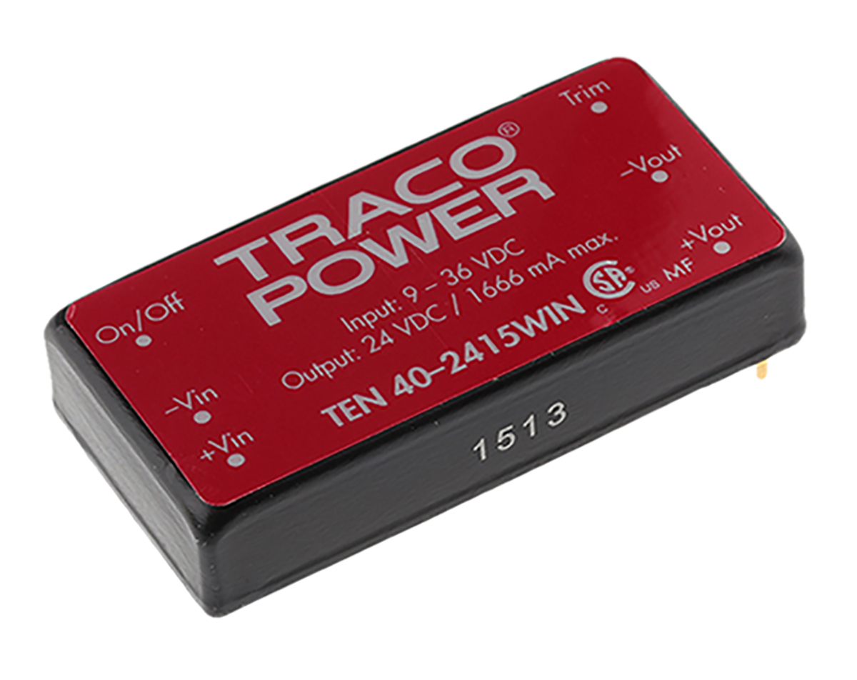 This is TEN 40WIN 40W Isolated DC-DC Converter Through Hole Vin 9 → 36 V dc Vout 24V dc manufactured by TRACOPOWER. The manufacturer part number is TEN 40-2415WIN. Additionally, the product is supplied with 1 outputs. Load Regulation - ±0.5%. The product is available in through hole configuration. The product ten 40win, is a highly preferred choice for users. Its accurate length is 50.8mm. It is a highly efficient product with an 89% of high efficiency. The product comes in 11mm depth.