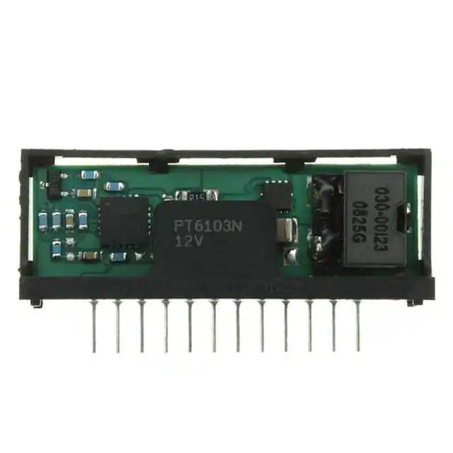 This is manufactured by Texas Instruments. The manufacturer part number is PT6103N. It is assigned with possible HTSUS value of 8504.40.9580. The product is rohs3 compliant. It has a 12v output voltage. The product has -40°c ~ 85°c operating temperature range. The maximum product's output current is 1a. Moreover, the product comes in [Package/ Case]. It offers 16v of minimum input voltage. It comes in non-isolated pol module configuration. The product is widely employed in ite (commercial). In addition, it is reach unaffected. It is a highly efficient product with an 91% of high efficiency. Its maximum input voltage is 38v. It is shipped in tray. Its typical moisture sensitivity level is 1 (unlimited). The product is available in through hole configuration. The product pt6100, is a highly preferred choice for users. Moreover, it corresponds to pt6103, a base product number of the product. Additionally, the product is supplied with 1 outputs. The product is designated with the ear99 code number