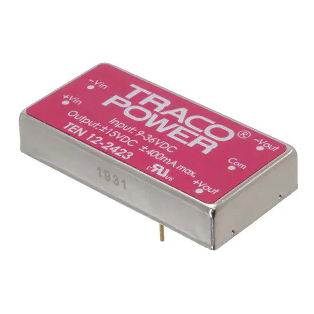 This is manufactured by Traco Power. The manufacturer part number is TEN 12-2423. It is assigned with possible HTSUS value of 8504.40.9580. The product is rohs3 compliant. It has a 15v output voltage. The product features power and watts of 12 w. The maximum product's output current is 400ma, 400ma. Moreover, the product comes in [Package/ Case]. It offers 9v of minimum input voltage. It comes in isolated module configuration. The product is widely employed in ite (commercial). In addition, it is reach unaffected. -15v of voltage output 2. It is a highly efficient product with an 84% of high efficiency. Its maximum input voltage is 36v. It is shipped in tube. The product's diameters include 2.00" l x 1.00" w x 0.40" h (50.8mm x 25.4mm x 10.2mm). 1.5 kv of isolation voltage. Its typical moisture sensitivity level is not applicable. The splendid features of the product include remote on/off, ocp, ovp, scp. The product is available in through hole configuration. The product ten 12wi (12w), is a highly preferred choice for users. The product has -40°c ~ 85°c (with derating) operating temperature range. Moreover, it corresponds to ten 12, a base product number of the product. Additionally, the product is supplied with 2 outputs. The product is designated with the ear99 code number