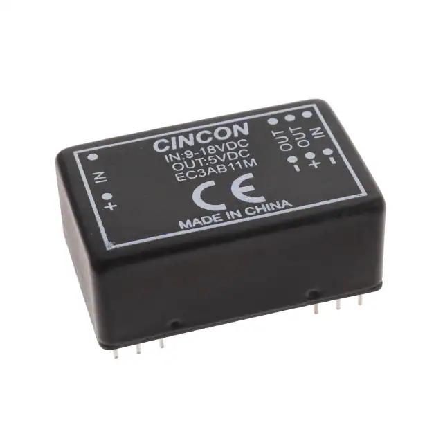 This is manufactured by Cincon Electronics Co. LTD. The manufacturer part number is EC3AB11M. Moreover, it corresponds to ec3ab11, a base product number of the product. It is assigned with possible HTSUS value of 8504.40.9580. The product is rohs3 compliant. It has a 5v output voltage. The product features power and watts of 3 w. The maximum product's output current is 600ma. Moreover, the product comes in [Package/ Case]. It offers 9v of minimum input voltage. It comes in isolated module configuration. The product is widely employed in ite (commercial). In addition, it is reach unaffected. It is a highly efficient product with an 76% of high efficiency. Its maximum input voltage is 18v. It is shipped in tube. The product's diameters include 1.25" l x 0.80" w x 0.50" h (31.8mm x 20.3mm x 12.7mm). It has a long 24 weeks standard lead time. 500 v of isolation voltage. Its typical moisture sensitivity level is 1 (unlimited). The splendid features of the product include scp. The product is available in through hole configuration. The product ec3ab (3w), is a highly preferred choice for users. The product has -25°c ~ 71°c operating temperature range. Additionally, the product is supplied with 1 outputs. The product is designated with the ear99 code number