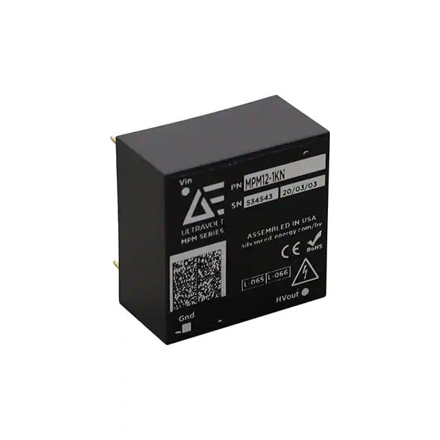 This is manufactured by Advanced Energy. The manufacturer part number is MPM12-1KN. It is assigned with possible HTSUS value of 8504.40.9580. The product is rohs3 compliant. The product features power and watts of 1.5 w. The maximum product's output current is 1.5ma. It is approved by ce. Moreover, the product comes in [Package/ Case]. It offers 2v of minimum input voltage. It comes in high voltage - isolated module configuration. The product is widely employed in ite (commercial). It has a -167 ~ -1000v output voltage. Its maximum input voltage is 12v. It is shipped in bulk. The product's diameters include 1.50" l x 1.50" w x 0.79" h (38.1mm x 38.1mm x 20.1mm). It has a long 16 weeks standard lead time. 100 v of isolation voltage. Its typical moisture sensitivity level is not applicable. The product is available in through hole configuration. The product ultravolt® mpm, is a highly preferred choice for users. The product has -10°c ~ 60°c operating temperature range. Moreover, it corresponds to mpm12, a base product number of the product. Additionally, the product is supplied with 1 outputs. The product is designated with the ear99 code number