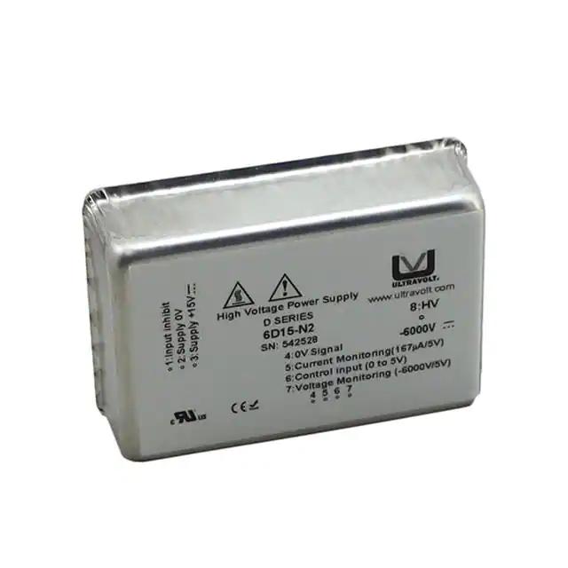 This is manufactured by Advanced Energy. The manufacturer part number is 6D15-N2. It is assigned with possible HTSUS value of 8504.40.9580. The product is rohs3 compliant. The product features power and watts of 2 w. The maximum product's output current is 330µa. Moreover, the product comes in [Package/ Case]. It offers 13.5v of minimum input voltage. It comes in high voltage - non-isolated module configuration. The product is widely employed in ite (commercial). It has a 0 ~ 6000v output voltage. Its maximum input voltage is 16.5v. It is shipped in bulk. The product's diameters include 2.50" l x 1.73" w x 0.69" h (63.5mm x 44.0mm x 17.5mm). It has a long 16 weeks standard lead time. Its typical moisture sensitivity level is not applicable. The splendid features of the product include adjustable output, remote on/off. The product is available in through hole configuration. The product ultravolt® d, is a highly preferred choice for users. The product has -10°c ~ 65°c operating temperature range. Additionally, the product is supplied with 1 outputs. The product is designated with the ear99 code number