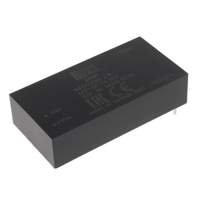 This is manufactured by MEAN WELL USA Inc.. The manufacturer part number is MDS20B-24. It is assigned with possible HTSUS value of 8504.40.9580. The product is rohs3 compliant. It has a 24v output voltage. The product features power and watts of 20 w. The maximum product's output current is 833ma. It is approved by ce, eac. Moreover, the product comes in [Package/ Case]. It offers 18v of minimum input voltage. It comes in isolated module configuration. The product is widely employed in medical. In addition, it is reach unaffected. It is a highly efficient product with an 89% of high efficiency. Its maximum input voltage is 36v. It is shipped in bulk. The product's diameters include 2.00" l x 1.00" w x 0.47" h (50.8mm x 25.4mm x 12.0mm). It has a long 23 weeks standard lead time. 4 kv of isolation voltage. Its typical moisture sensitivity level is not applicable. The product is available in through hole configuration. The product mds20 (20w), is a highly preferred choice for users. The product has -40°c ~ 90°c (with derating) operating temperature range. Moreover, it corresponds to mds20, a base product number of the product. Additionally, the product is supplied with 1 outputs. The product is designated with the ear99 code number