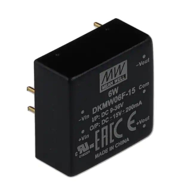 This is manufactured by MEAN WELL USA Inc.. The manufacturer part number is DKMW06F-15. It is assigned with possible HTSUS value of 8504.40.9580. The product is rohs3 compliant. It has a 15v output voltage. The product features power and watts of 6 w. The maximum product's output current is 200ma, 200ma. It is approved by ce, curus, eac. Moreover, the product comes in [Package/ Case]. It offers 9v of minimum input voltage. It comes in isolated module configuration. The product is widely employed in ite (commercial). In addition, it is reach unaffected. -15v of voltage output 2. It is a highly efficient product with an 85% of high efficiency. Its maximum input voltage is 36v. It is shipped in tube. The product's diameters include 1.00" l x 1.00" w x 0.46" h (25.4mm x 25.4mm x 11.7mm). It has a long 23 weeks standard lead time. 1.5 kv of isolation voltage. Its typical moisture sensitivity level is not applicable. The product is available in through hole configuration. The product dkmw06 (6w), is a highly preferred choice for users. The product has -40°c ~ 85°c (with derating) operating temperature range. Moreover, it corresponds to dkmw06, a base product number of the product. Additionally, the product is supplied with 2 outputs. The product is designated with the ear99 code number